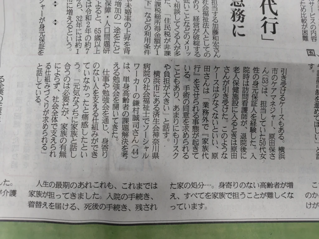 以前インタビューを受けた身元保証問題の記事が6月2日の産経新聞に掲載された。